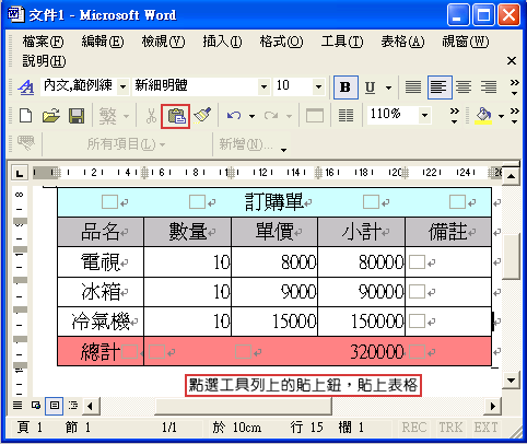 完成後,就會把Excel工作表轉換為Word表格文件,我們可以利用表格編輯將表格重新編輯。