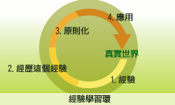 四階段是進行『心得分享』,為什麼呢?台灣的教育一直著重在做研究,但欠缺同儕之間或同學之間彼此的心得分享。如同經驗學習提及『反思』與應用,經由回饋的過程來進行批判思考,『經驗學習』很強調彼此經驗的分享。柯內爾也認為小組之間同儕之間的分享是非常重要的,這也是相互的印證。 |