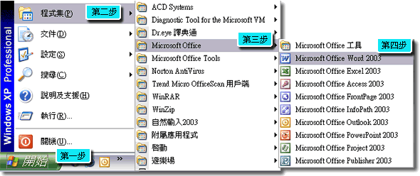 一、點選您電腦左下角的 「開始」/「程式集」/「Microsoft Office」/「Microsoft Office Word 2003」。