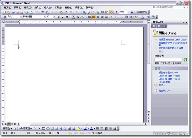 二、即可進入Microsoft Office Word 2003的畫面。
