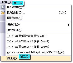 二、點選 「檔案」 /「結束」 。