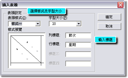 將指標移到表格裡面使指標呈現 狀態時,按住滑鼠左鍵拖移選取。 |