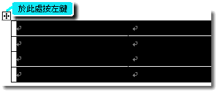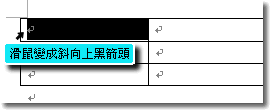 將指標移到表格內,左上角出現點選記號後,按滑鼠左鍵,即可選取表格。 |
