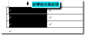 到表格左邊,使指標變成箭頭狀態後,按一下滑鼠左鍵。 |
