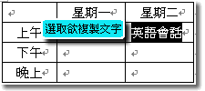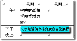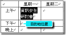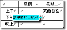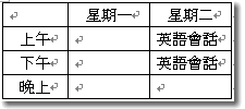 在表格內,文字的輸入大致上和word頁面內的文字輸入一樣,只是表格是以儲存格為單位,要輸入文字時,要將插入點移至要輸入文字的儲存格裡。