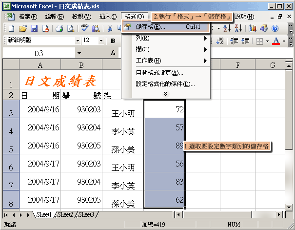 完成後,儲存格中的數字就會依設定的類別內容顯示。