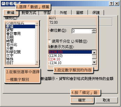 適用於一般數字的顯示,可以設定小數位數、負數表示法以及是否加上千分位符號。 |