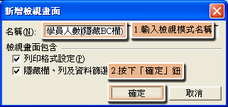 開啟「新增檢視畫面」視窗後,在「名稱」欄位為此版面設定一個檢視模式名稱,然後按下「確定」鈕。